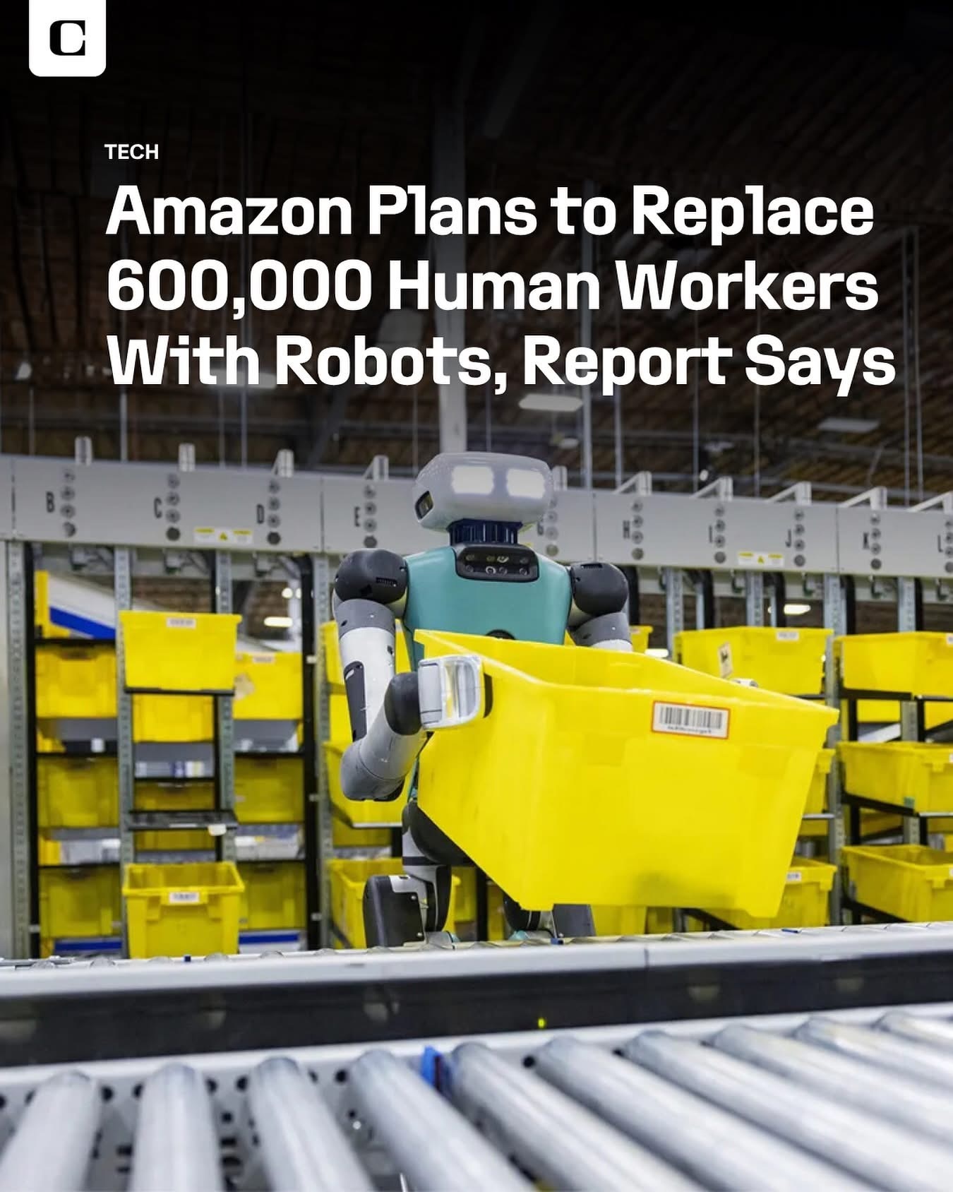 The Times reports that internal Amazon documents suggest that the company is looking into building and using more robots to replace human workers. This would allow Amazon to avoid hiring new workers to meet increasing demand, translating to 600,000 jobs replaced by 2033, according to the report.