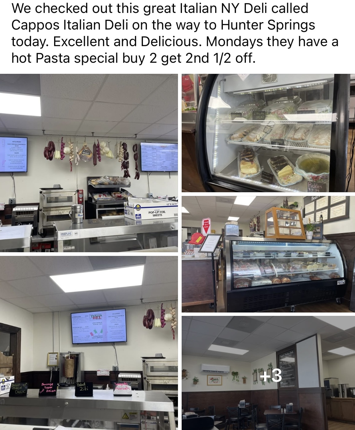 We checked out this great Italian NY Deli called Cappos Italian Deli in Crystal River on the way to Hunter Springs today. Excellent and Delicious. Mondays they have a hot Pasta special buy 2 get 2nd 1/2 off.
