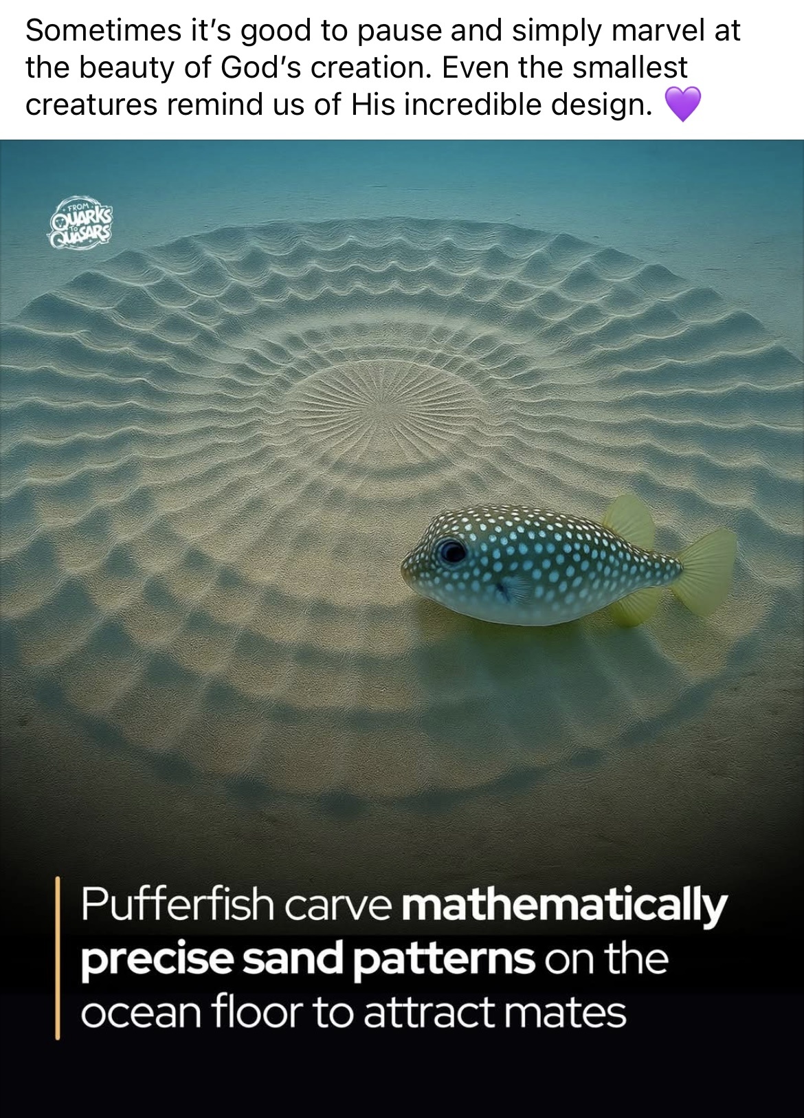 Pufferfish carve mathematically precise sand patterns on the ocean floor to attract mates