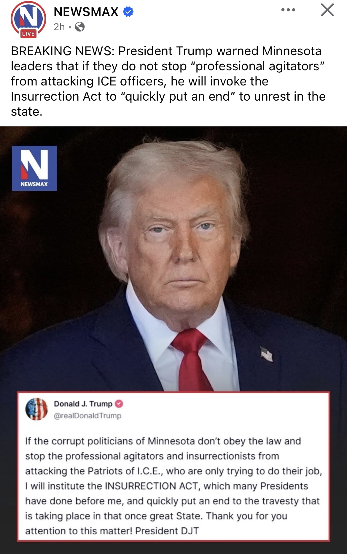 BREAKING NEWS: President Trump warned Minnesota leaders that if they do not stop "professional agitators" from attacking ICE officers, he will invoke the Insurrection Act to "quickly put an end" to unrest in the state.