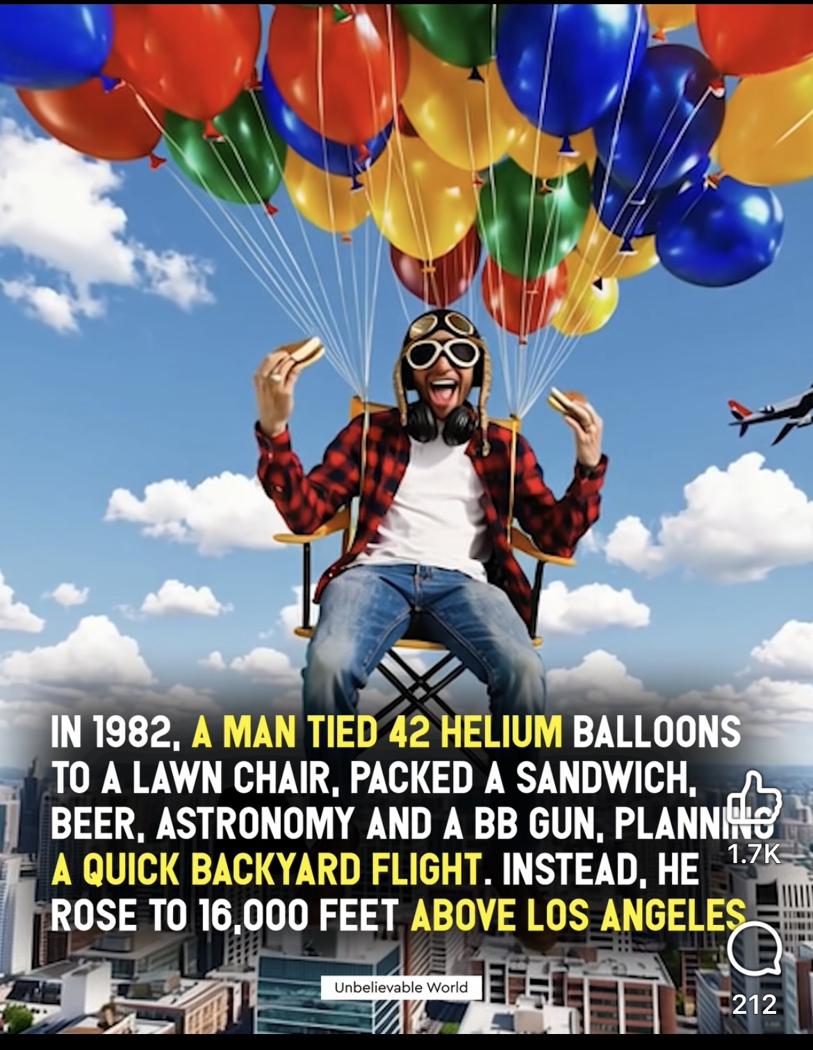 In 1982, California truck driver Larry Walters turned an ordinary lawn chair and a handful of helium balloons into one of the most unforgettable adventures in aviation history.