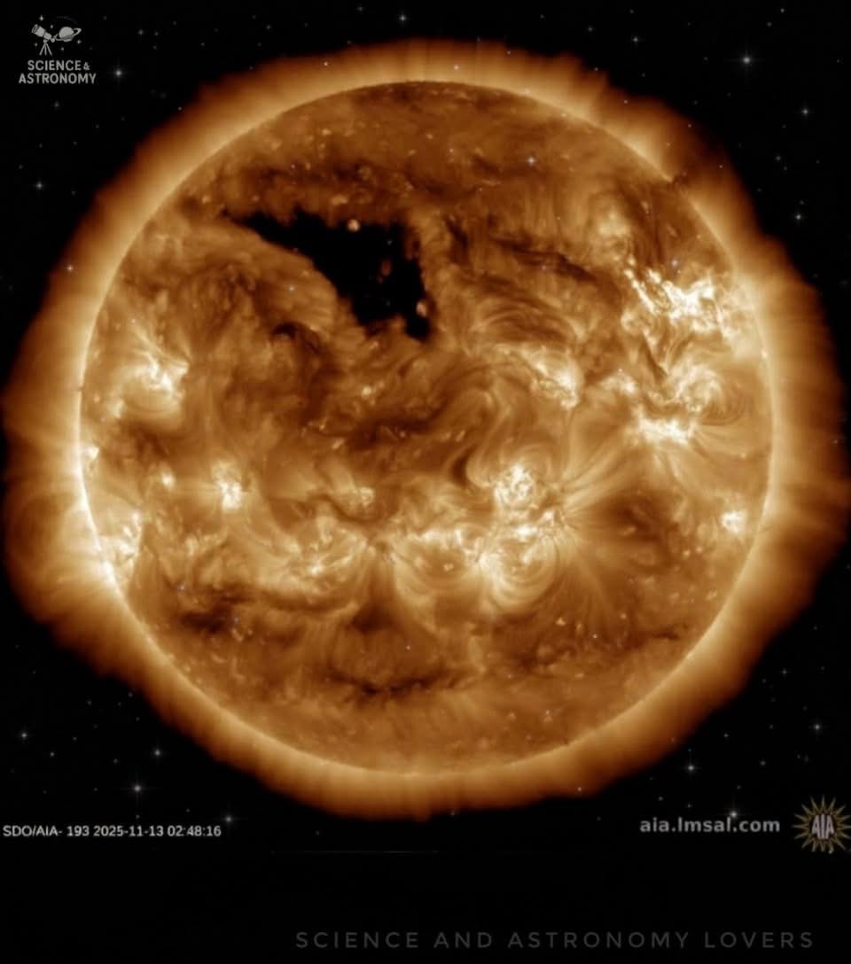 A large coronal hole has opened on the Sun, and its high-speed solar wind is now heading straight for Earth. Forecasters say it could spark new geomagnetic storm activity within the next 24–48 hours, with another round of enhanced auroras possible.