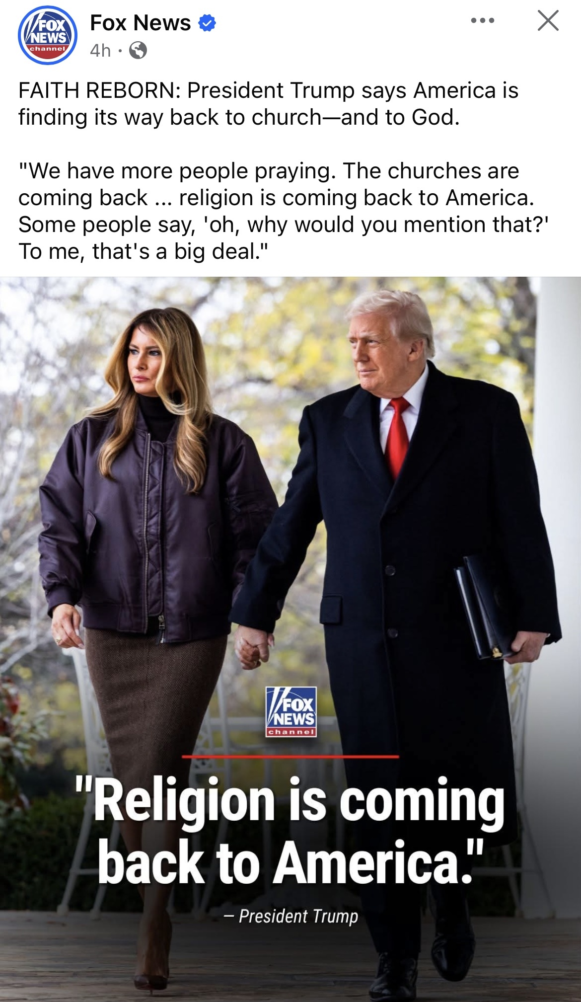 "We have more people praying. The churches are coming back ... religion is coming back to America. Some people say, 'oh, why would you mention that?' To me, that's a big deal."