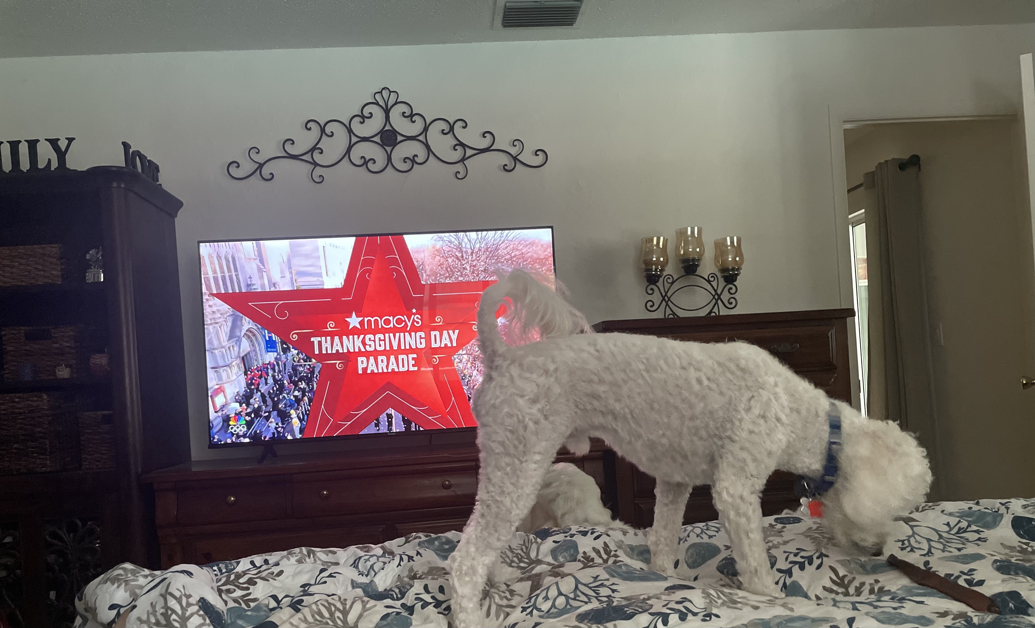 Happy Thanksgiving. 3 pics. I'm drinking coffee in bed and the dogs are here chewing on their little dog bones. It's a great Thanksgiving morning. I am thankful first and foremost to Our Lord. Thank you Dear Lord for loving us ❤️🙏