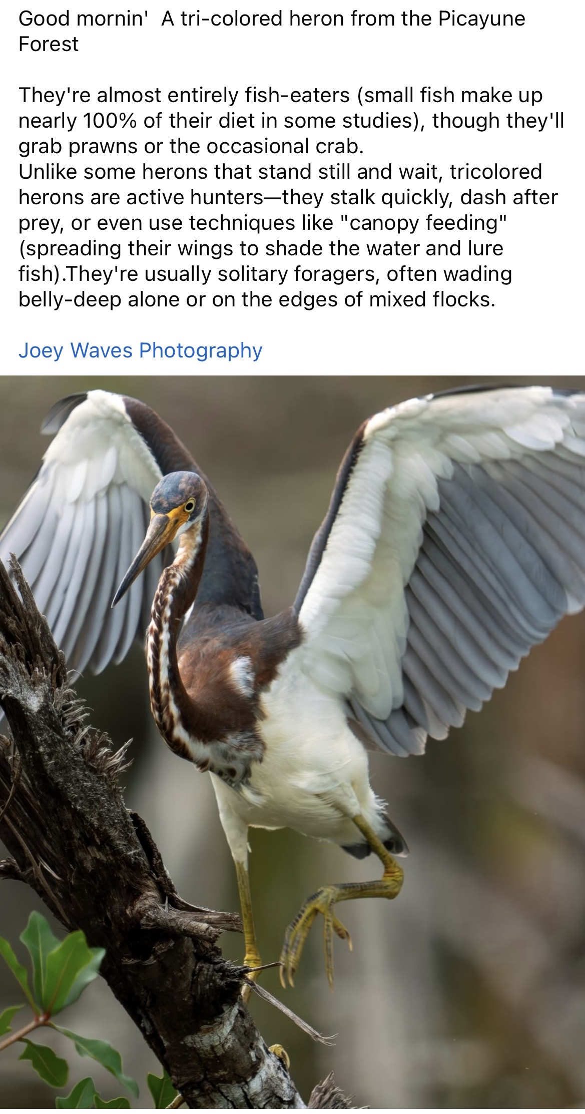 Good mornin' A tri-colored heron from the Picayune Forest