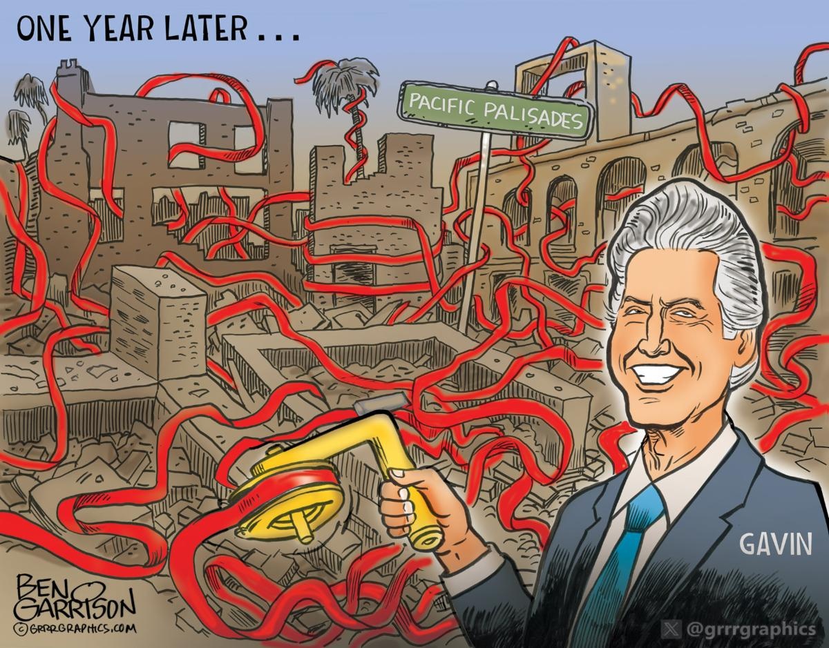 The progressive left leadership in California is in no hurry to expedite rebuilding the Pacific Palisades. The same incompetent left ignored the fire threat and didn’t even bother to store water so the fire hydrants could function. Such gross incompetence on the part of Gavin Newsom and LA Mayor Karen Bass should have seen them run out the state, but instead they’re still there pontificating and virtue signaling. Newsom even expects to become president despite his horrendous record. Apparently he thinks a slick hairdo is enough to fool voters.