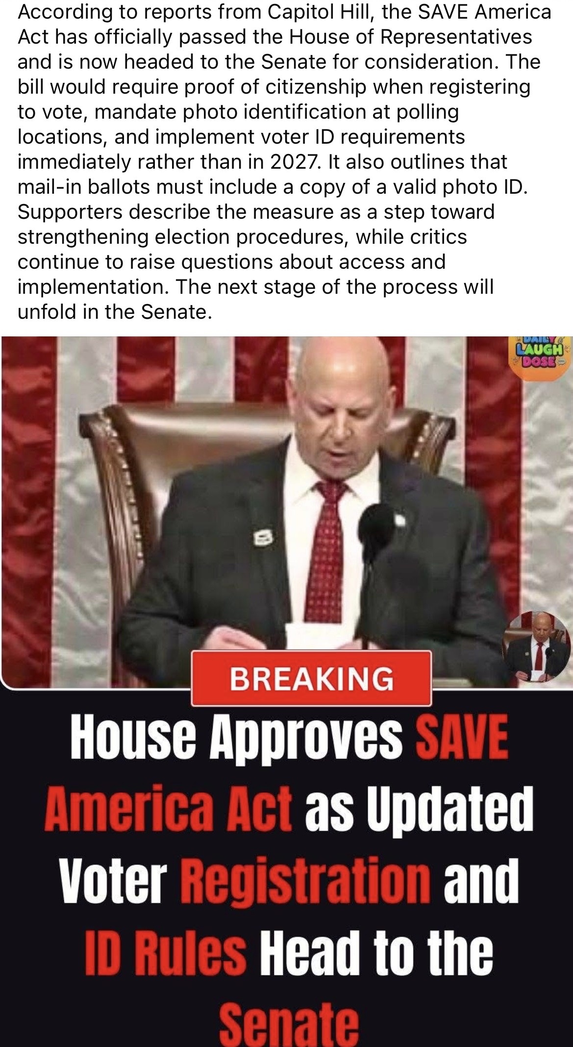 Supporters describe the measure as a step toward strengthening election procedures, while critics continue to raise questions about access and implementation. The next stage of the process will unfold in the Senate.