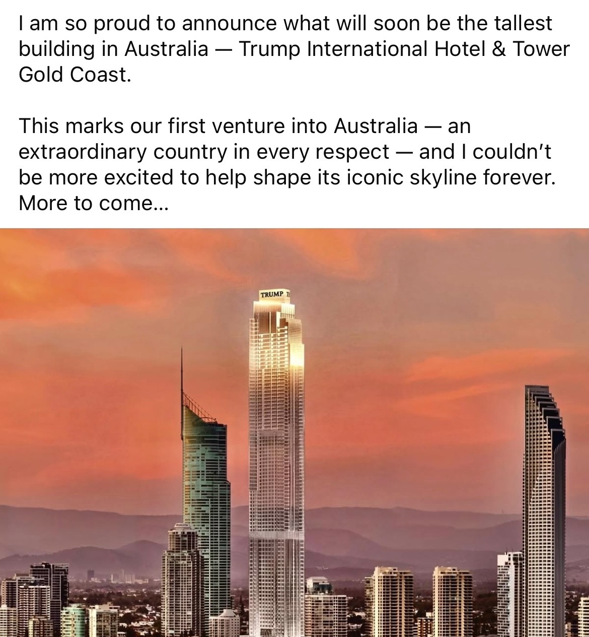 This marks the first venture into Australia - an extraordinary country in every respect - and couldn't be more excited to help shape its iconic skyline forever.