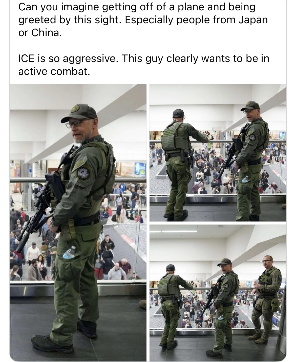 Love my country like I love my drinks, full of ICE!!!! Also like that his service rifle, he has every right to be carrying it while DOING HIS JOB. Disgusting libtards